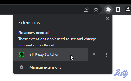 Click on the extension's icon in the top right of your browser and then click on BP Proxy Switcher.