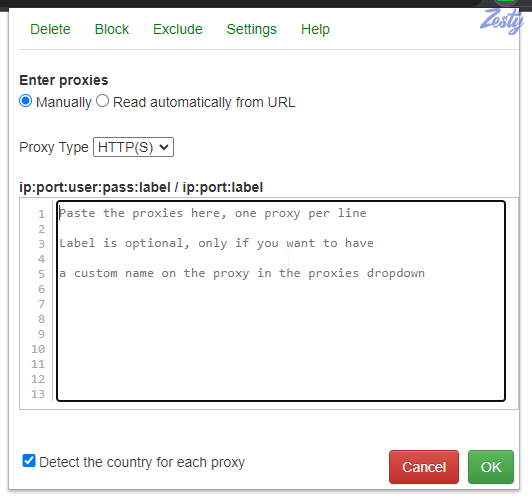 Once opened, click on the **edit** button and paste your proxies into the text box and click **OK**.