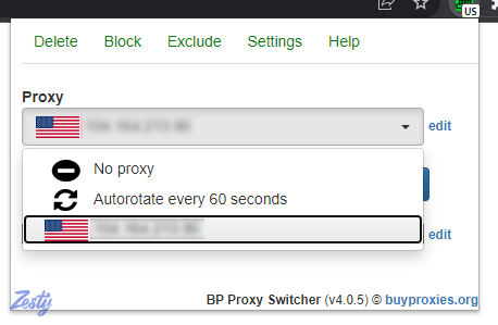 Once you've added your proxies, you'll be able to select which proxy you want to browse with.