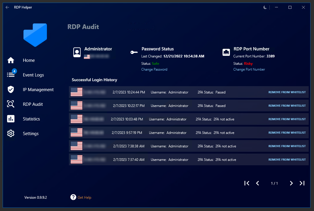 Click on the **RDP Audit** tab on the left-hand side of RDPHelper.